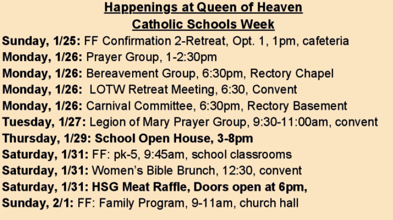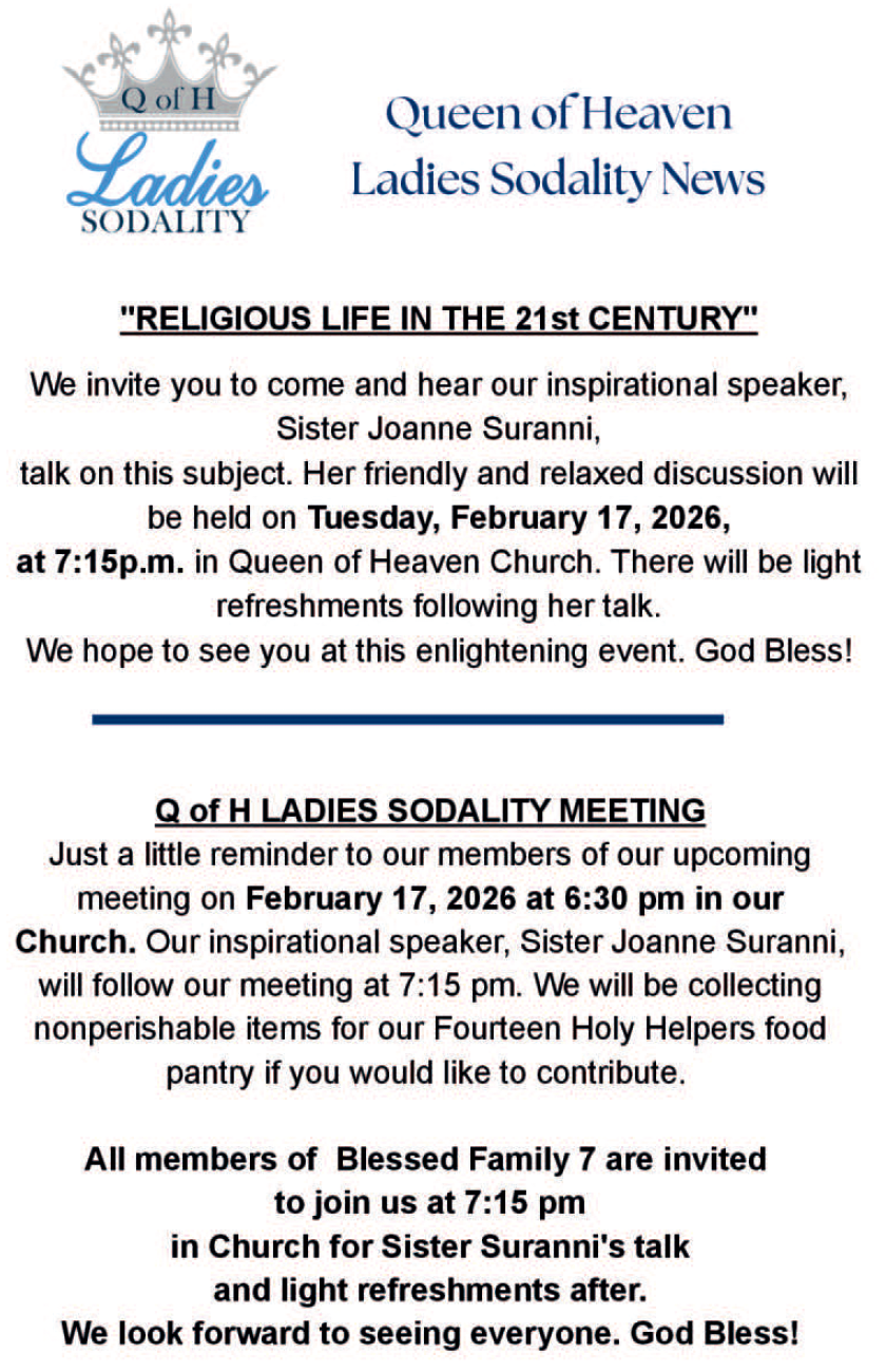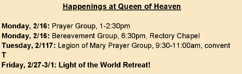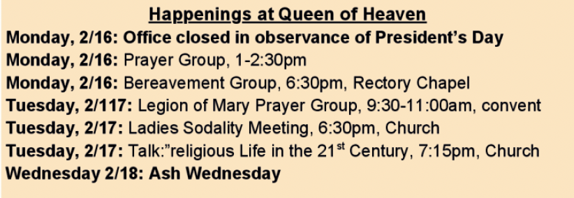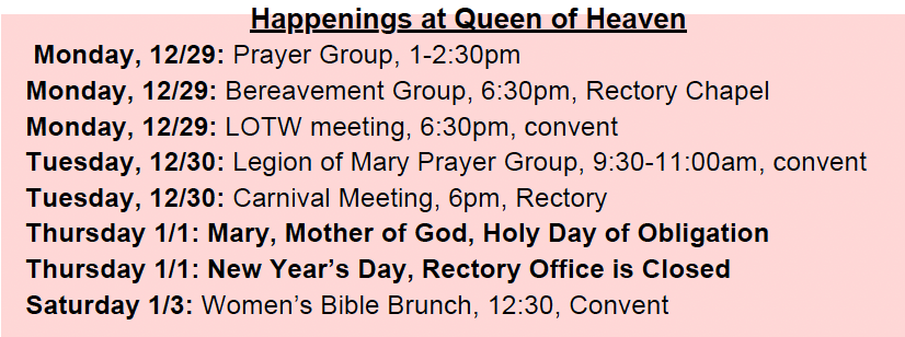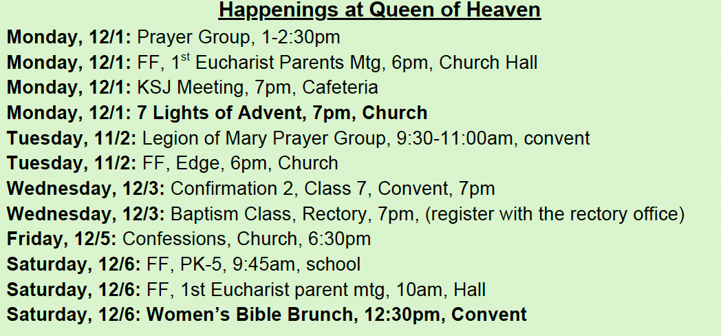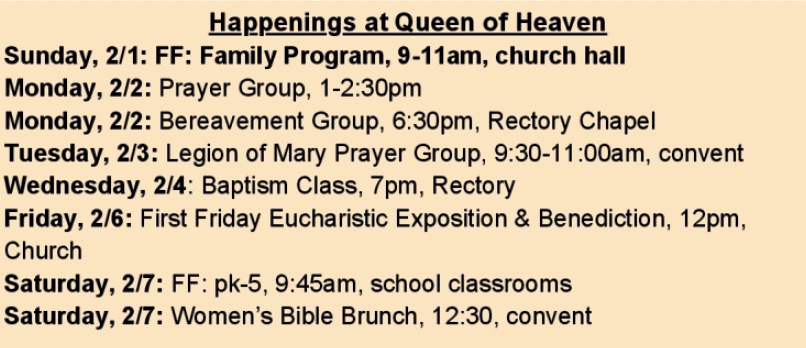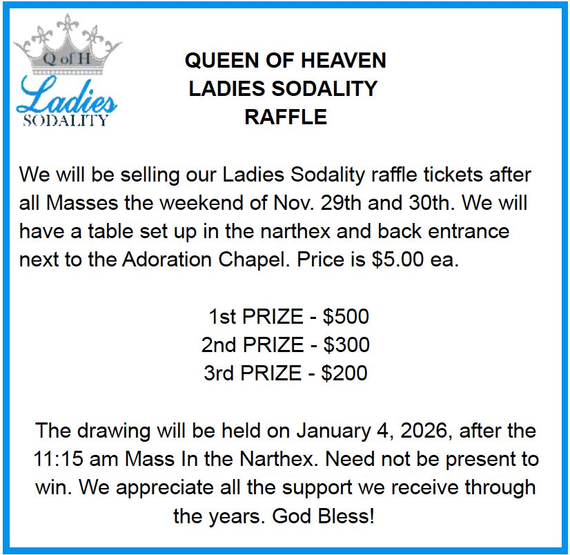 At Queen of Heaven, our parish bulletins are your go-to source for the latest news, events, and inspiration. Each week, we share important updates, spiritual reflections, and opportunities to connect with our vibrant community. Stay informed and engaged with us!